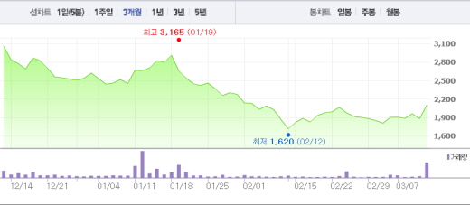 데코앤이는 10일 지난해 개별기준 영업이익이 27억2000만원을 기록, 4년 만에 흑자전환했다고 공시했다.주가흐름<사진출처=네이버 캡쳐>
