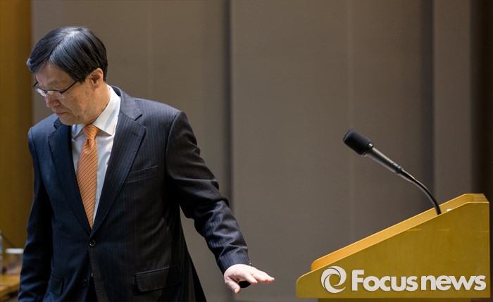 (서울=포커스뉴스) 11일 오전 서울 강남구 포스코센터에서 열린 정기주주총회에 참석한 권오준 포스코 회장이 인사말을 마친 후 자리로 향하고 있다.