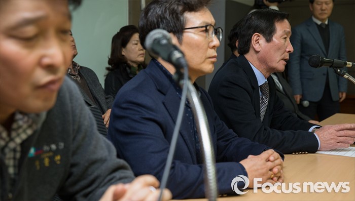 (서울=포커스뉴스) 11일 오전 서울 영등포구 중소기업중앙회 중회의실에서 정기섭(오른쪽) 회장을 비롯한 임원들이 북한당국의 개성공단 자산 청산통보에 대한 입주기업의 입장을 발표하고 있다.