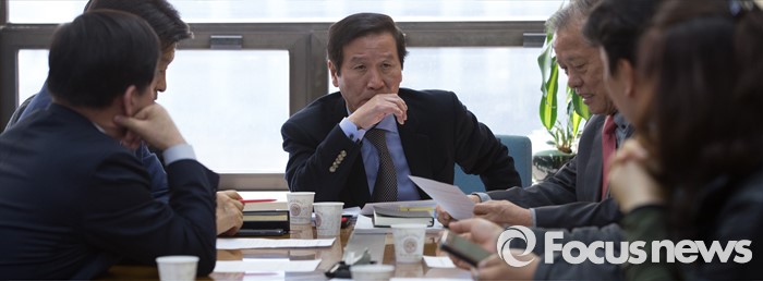 (서울=포커스뉴스) 11일 오전 서울 영등포구 중소기업중앙회에 마련된 개성공단기업협회 사무실에서 정기섭 회장을 비롯한 임원들이 북한당국의 개성공단 자산 청산통보에 대한 입주기업의 입장을 발표하기에 앞서 논의를 하고 있다.