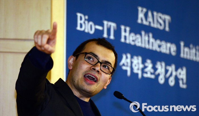 (대전=포커스뉴스) 이세돌 9단과 겨루는 인공지능 컴퓨터 알파고를 개발한 구글 딥마인드 최고경영자 데미스 하사비스가 11일 오후 대전 유성구 한국과학기술원에서 '인공지능과 미래' 라는 주제로 강연을 하고 있다.