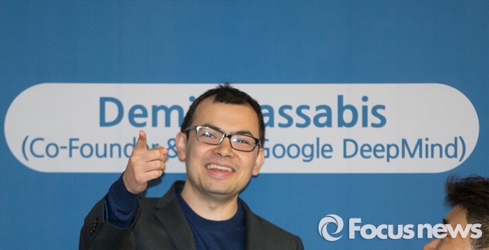 (대전=포커스뉴스) 이세돌 9단과 겨루는 인공지능 컴퓨터 알파고를 개발한 구글 딥마인드 최고경영자 데미스 하사비스가 11일 오후 대전 유성구 한국과학기술원(KIST)에서 '인공지능과 미래' 라는 주제로 강연을 하고 있다.
