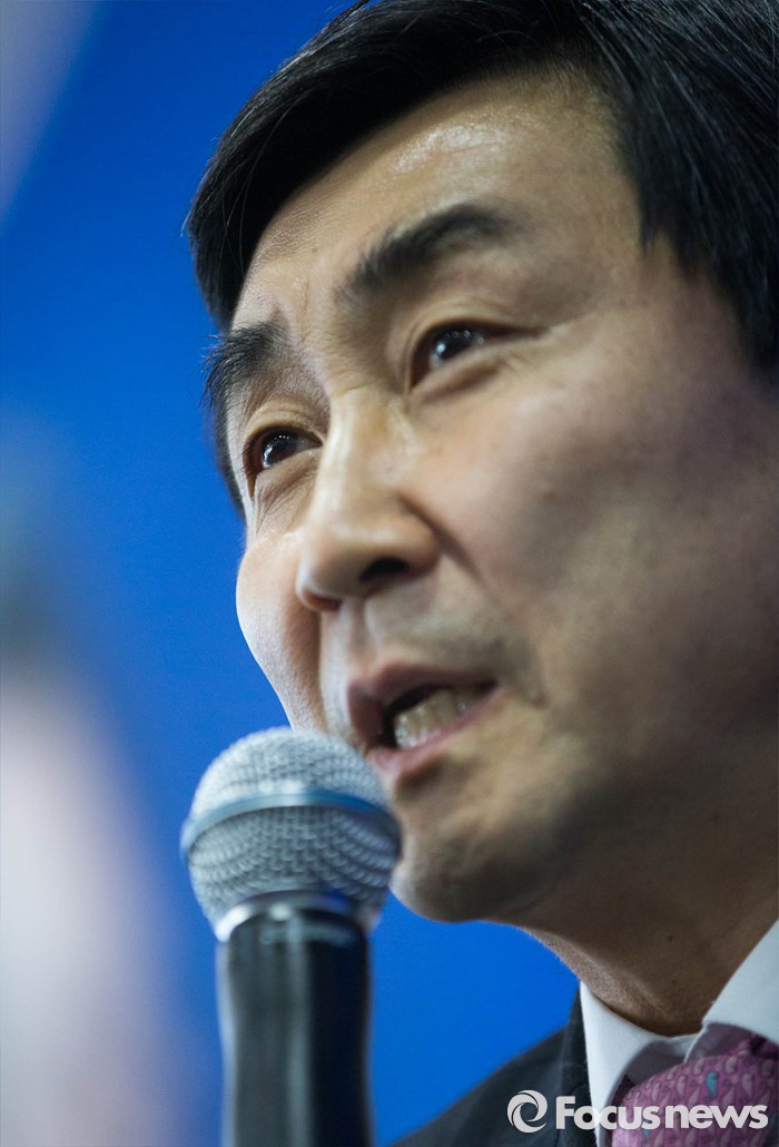 (공주=포커스뉴스) 이종걸 더민주 원내대표가 11일 오후 충남 공주시에서 열린 더민주 박수현 의원의 선거사무소 개소식에 참석, 박 의원의 지지를 호소하며 발언하고 있다.