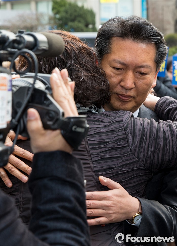 | △ 지지자들과 포옹하는 정청래 |