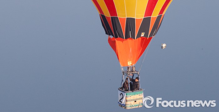 (논산=포커스뉴스) 12일 오전 충남 논산 강경읍 수변공원 일대에서 열린 2015-2016시즌 코리아열기구그랑프리 5차전 ‘오프로드컵’에서 대회에 출전한 선수들이 공중 레이스를 펼치고 있다.