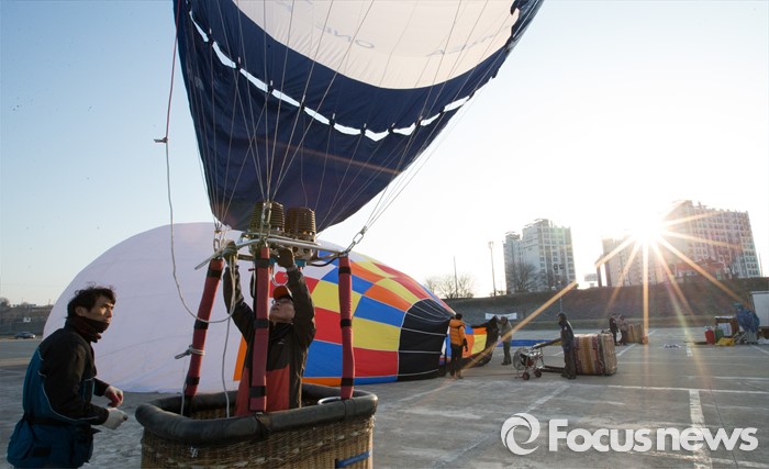 (논산=포커스뉴스) 12일 오전 충남 논산 강경읍 수변공원 일대에서 열린 2015-2016시즌 코리아열기구그랑프리 5차전 ‘오프로드컵’에서 대회에 출전한 선수들이 공중 레이스를 펼칠 준비를 하고 있다.