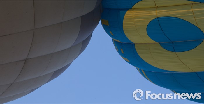 (논산=포커스뉴스) 12일 오전 충남 논산 강경읍 수변공원 일대에서 열린 2015-2016시즌 코리아열기구그랑프리 5차전 ‘오프로드컵’에서 대회에 출전한 선수들이 공중 레이스를 펼치고 있다.