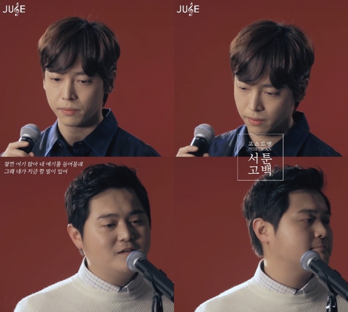 또 쥬스TV 영상을 통해 '신촌을 못가', '월급 받던 날' 등 기존 포스트맨의 곡과는 다른 분위기인 '서툰 고백'을 음원과는 또 다른 색깔로 느낄 수 있게 했다. <영상출처=쥬스TV>보컬듀오 포스트맨이 쥬스TV를 통해 풋풋한 감성의 고백송 '서툰 고백' 라이브 영상을 공개했다.<사진출처=쥬스TV 영상 캡처>