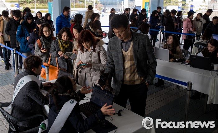 (서울=포커스뉴스) 12일 오후 서울 성동구 한양대학교 올림픽체육관에서 열린 '2017학년도 대학입시설명회'가 참석한 학부형, 수험생 및 관계자들로 붐비고 있다.