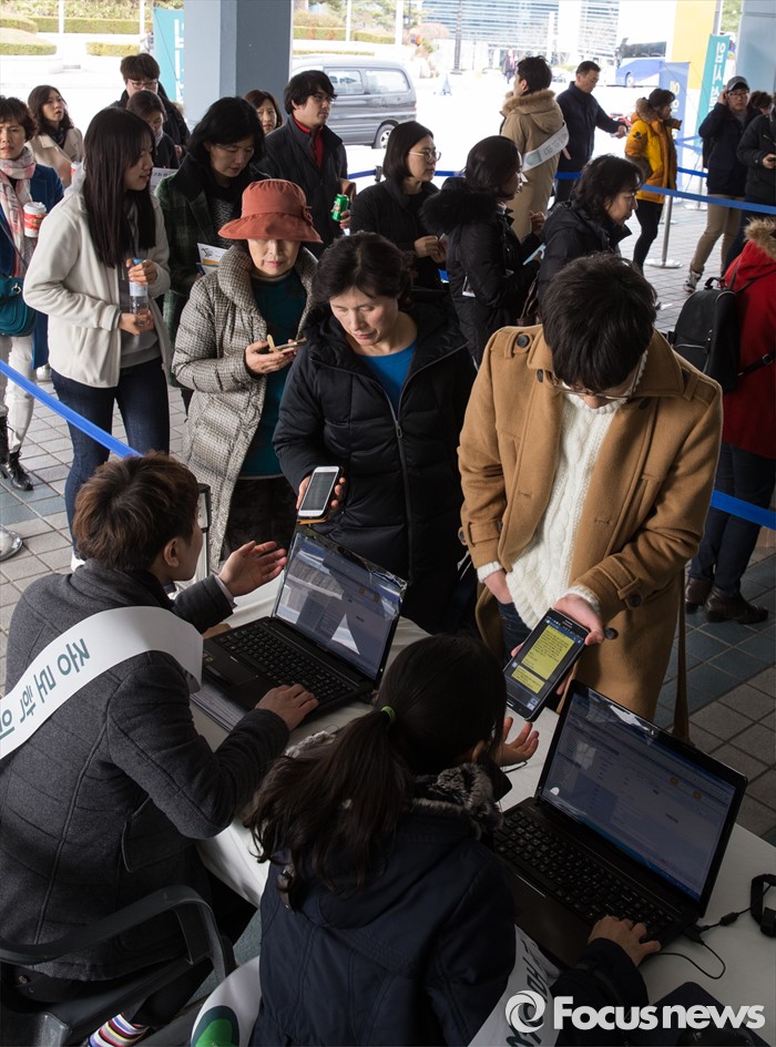 (서울=포커스뉴스) 12일 오후 서울 성동구 한양대학교 올림픽체육관에서 열린 '2017학년도 대학입시설명회'가 참석한 학부형, 수험생 및 관계자들로 붐비고 있다.