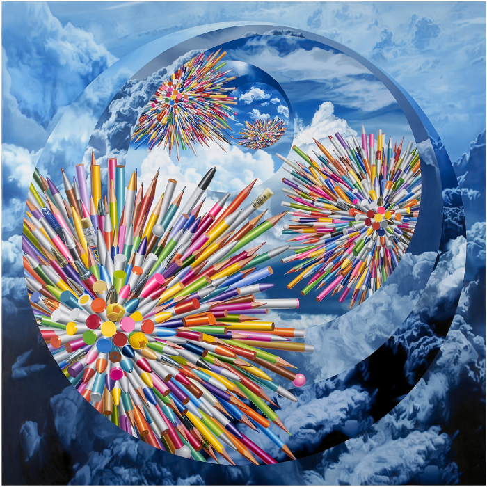 홍경택은 지난 1995년부터 1998년에 걸쳐 완성한 작품 '연필1'이 2013년 5월 홍콩 크리스티 경매에서 한국 현대미술품 최고가인 9억6000만원 기록을 세우며 주목받았다.'연필' 작품으로 유명한 화가 홍경택이 홍콩에서 개인전을 연다. 홍경택의 2014년 작 '연필그림-여섯개의 하늘(Pens The six celestial bodies)'. <사진제공=아뜰리에 아키>