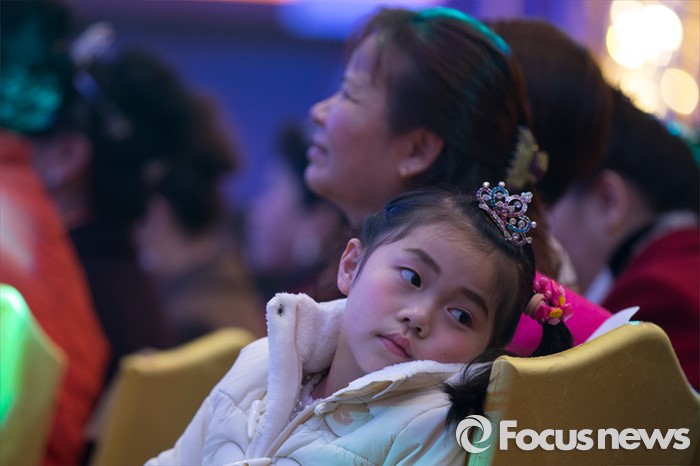 (동관/중국=포커스뉴스)중국 광동성 동관에서 12일 열린 제27회 미시즈월드 미인대회에서 한 어린이가 취재진들을 구경하고 있다.