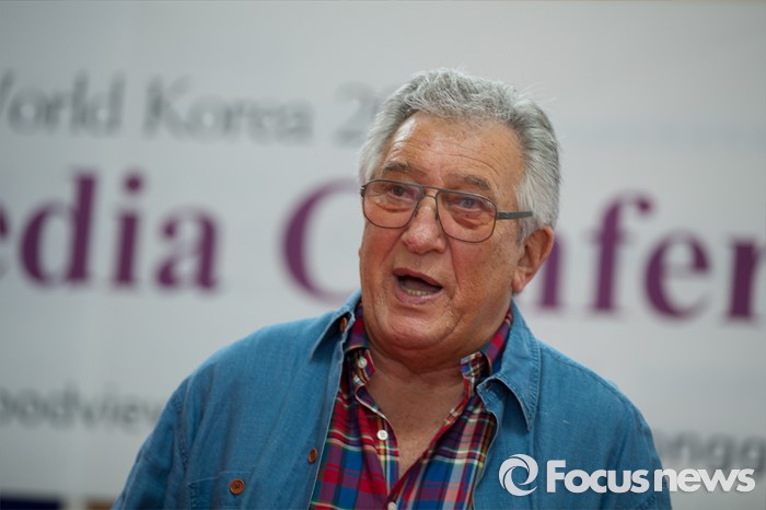 (동관/중국=포커스뉴스)중국 광동성 동관 굿뷰호텔에서 13일 열린 제28회 미시즈월드 한국 개최 기자간담회에 데이빗 마르멜 미시즈월드 회장이 취재진의 질문에 대답하고 있다.