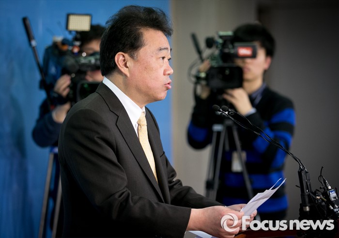 (서울=포커스뉴스) 김성수 더불어민주당 대변인이 14일 오전 서울 여의도 국회 정론관에서 추가 공천심사 결과 발표를 하고 있다. 이날 더불어민주당은 이미경, 이해찬, 정호준 의원의 공천 배제(컷오프)를 발표했다.