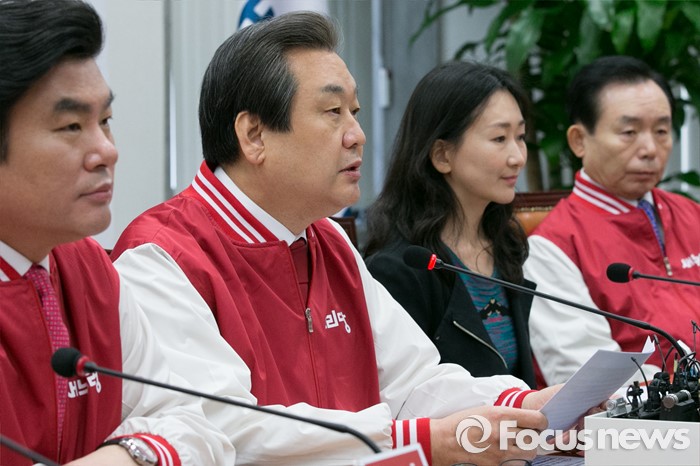(서울=포커스뉴스) 김무성(왼쪽 두번째) 새누리당 대표가 14일 오전 서울 여의도 국회에서 열린 최고위원회의에 참석해 모두발언하고 있다.