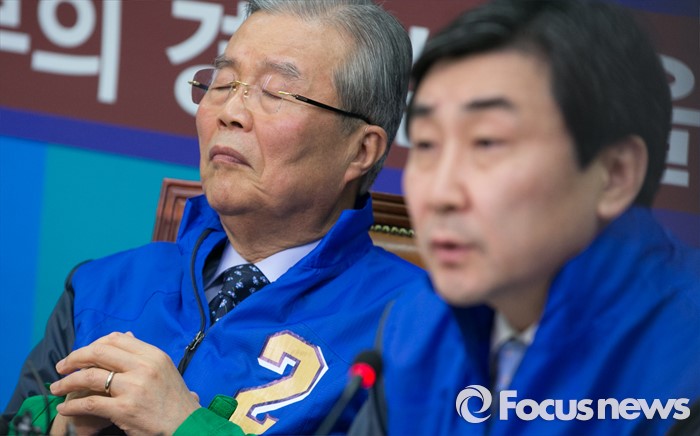 (서울=포커스뉴스) 김종인(왼쪽) 더불어민주당 비대위 대표가 14일 오전 서울 여의도 국회에서 열린 비상대책위원회의에 참석해 이종걸 원내대표의 발언을 듣고 있다.