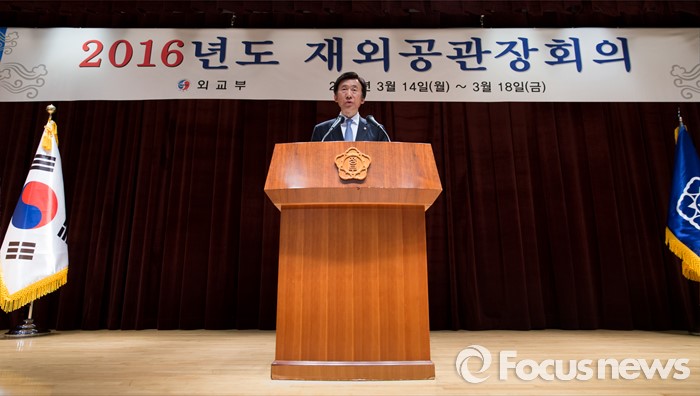 (서울=포커스뉴스) 14일 오전 서울 종로구 외교부에서 2016년도 재외공관장회의에 참석한 윤병세 외교부 장관이 인사말을 하고 있다.
