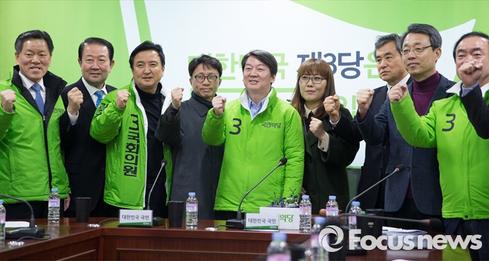 (서울=포커스뉴스) 안철수 국민의당 상임 공동대표(중앙)가 14일 오전 여의도 국회 의원회관에서 열린 최고위원회의에서 공동대표와 상임선대위원장을 대신해 초청된 국민대표들과 파이팅을 외치고 있다.