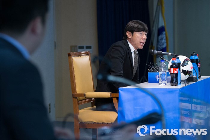 (서울=포커스뉴스) 신태용 올림픽 축구대표팀 감독이 14일 오전 종로구 축구회관에서 올림픽 명단 발표 기자회견을 하고 있다.