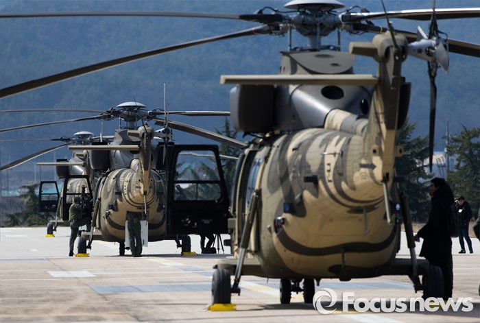 (영천=포커스뉴스) 10일 오후 제2작전사령부 예하부대에서 국산 헬기 수리온(KUH-1)이 육군항공·특공부대 전개훈련에 참가해 편대이륙을 준비하고 있다.
