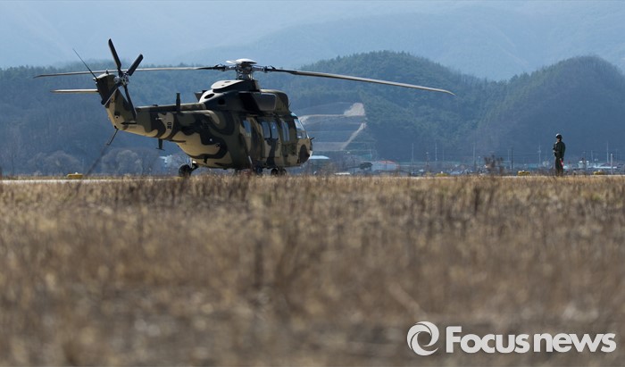 (영천=포커스뉴스) 10일 오후 제2작전사령부 예하부대에서 국산 헬기 수리온(KUH-1)이 육군항공·특공부대 전개훈련에 참가해 편대이륙을 준비하고 있다.