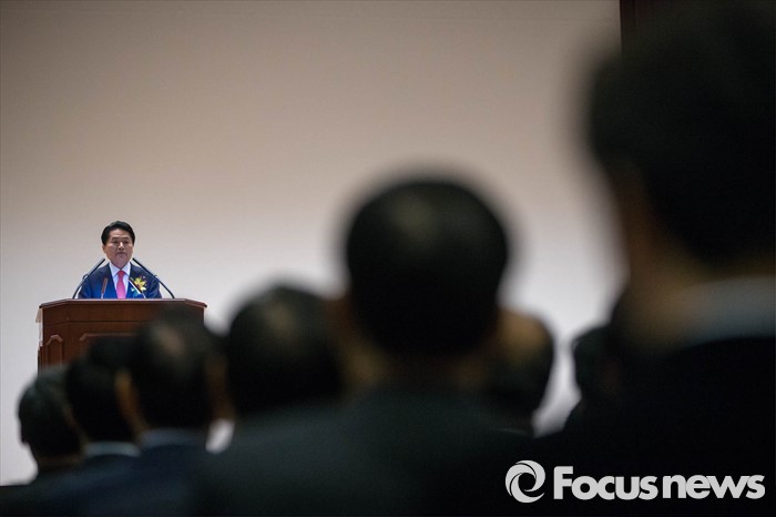 (서울=포커스뉴스) 김병원 농협 신임 회장이 14일 오전 서울 중구 농협 중앙회에서 열린 신임 회장 취임식에 참석, 취임을 기념하며 인사말을 하고 있다.