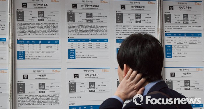 (대전=포커스뉴스) 14일 오전 대전시청에서 열린 청년희망로드쇼 대전·충남권 우수기업 채용박람회에 구직자가 구직정보를 살피고 있다.