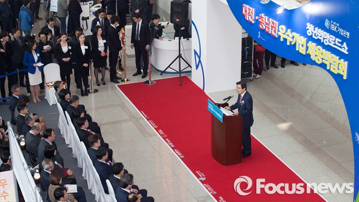 (대전=포커스뉴스) 황교안 국무총리가 14일 오전 대전시청에서 열린 청년희망로드쇼 대전·충남권 우수기업 채용박람회에 참석해 축사를 하고 있다.