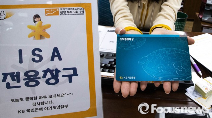 (서울=포커스뉴스) 개인종합자산관리계좌(ISA) 시판이 시작된 14일 오후 서울 여의도 국민은행 본점에서 한 직원이 ISA 통장을 선보이고 있다. ISA란 실질적 재산형성을 지원하는 세제혜택 상품으로 가입자가 신탁계좌를 이용하여 다양한 금융상품(예금, ETF, ELS, 펀드 등)을 선택하여 포트폴리오를 구성하고 운용 관리하는 계좌이다.