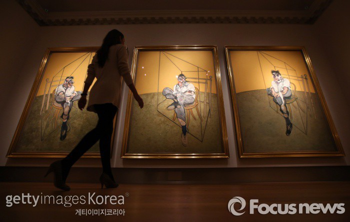 미술품 정보시장을 선도하는 아트피스는 파블로 피카소, 앤디 워홀과 함께 베이컨을 현대미술의 선구자 10명 가운데 1명으로 꼽았다.2013년 10월 촬영한 프랜시스 베이컨의 작품이다. 이 작품의 추정 가치는 9000만 파운드(1530억원)이다. 프랜시스 베이컨은 파블로 피카소, 앤디 워홀과 함께 현대 미술의 선구자로 꼽힌다. 지난해 6월 베이컨의 생전 지인이 소유하던 작품 5점이 스페인 마드리드에서 흔적도 없이 사라졌다. 외부 침입 흔적이 없어 경찰이 수사에 난항을 겪고 있다.(Photo by Peter Macdiarmid/Getty Images)2016.03.14 ⓒ게티이미지/멀티비츠