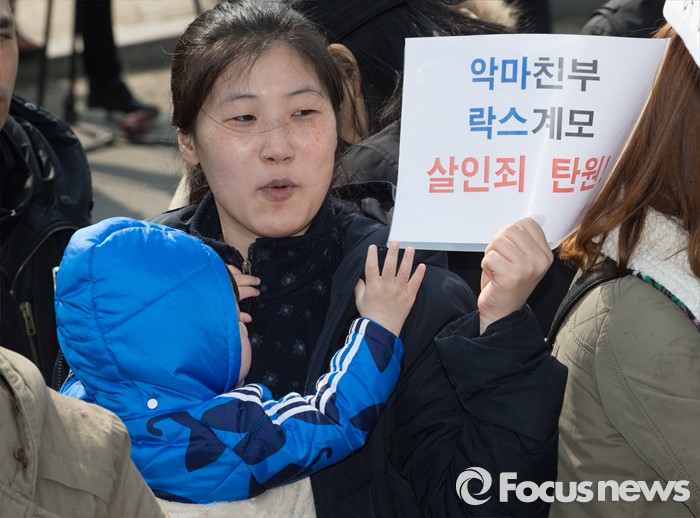 (평택=포커스뉴스) 학대와 무관심 속에 살해당한 신원영 군의 계모 김모 씨와 친부 신모 씨가 14일 오후 경기도 평택시 포승읍 자택에 도착하기를 시민단체 회원들과 시민들이 기다리고 있다.