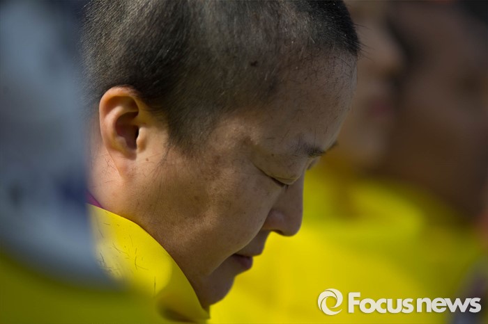 (서울=포커스뉴스) 14일 오후 서울 종로구 정부서울청사앞에서 전국교직원노동조합원 및 관계자들이 법외노조 판결에 대한 교육당국의 후속조치 철회를 촉구하며 삭발을 하고 있다.