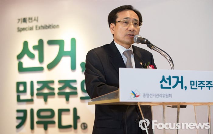 (서울=포커스뉴스) 문상부 중앙선거관리위원회 상임위원이 14일 오후 서울 종로구 대한민국역사박물관에서 열린 대한민국 선거의 역사 '선거, 민주주의를 키우다.' 특별전시회 개막식에 참석해 인사말을 하고 있다.