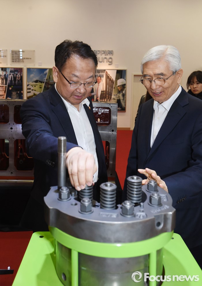 (공주=포커스뉴스) 유일호 부총리 겸 기획재정부 장관이 14일 오후 한-미 FTA 수혜기업인 충남 공주 소재 삼영기계(주)를 방문해 현장을 둘러보고 있다. <사진제공=기획재정부>
