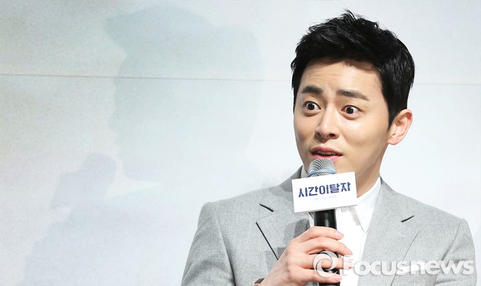 (서울=포커스뉴스) 15일 오전 서울 강남구 압구정 CGV에서 열린 영화 '시간이탈자' 제작보고회에 참석한 배우 조정석이 취재진의 질문에 답하고 있다.