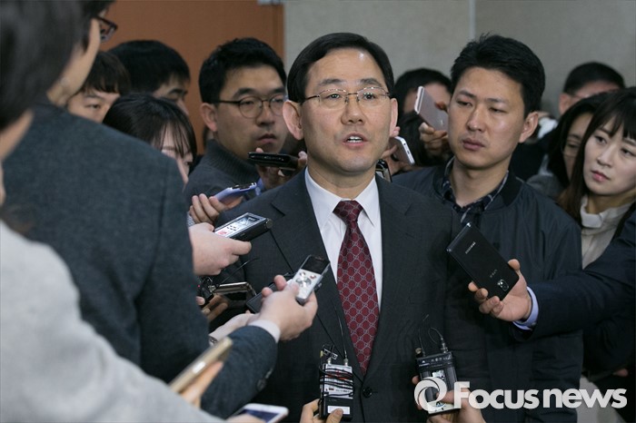 (서울=포커스뉴스) 20대 총선 공천에서 배제된 주호영 새누리당 의원이 15일 오전 서울 여의도 국회 정론관에서 기자회견을 마친 뒤, 기자들의 질문에 답변하고 있다.