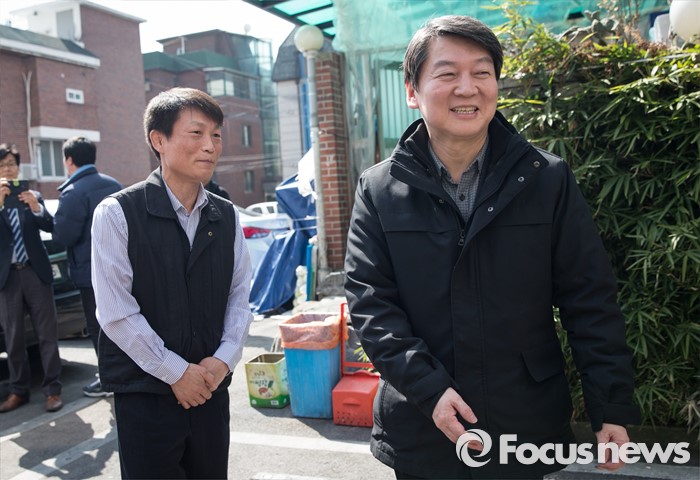 (서울=포커스뉴스) 안철수 국민의당 상임공동대표와 택시 기사가 간담회를 갖기 위해 15일 오후 서울 마포구 연남동의 한 기사식당 입구를 들어서고 있다.