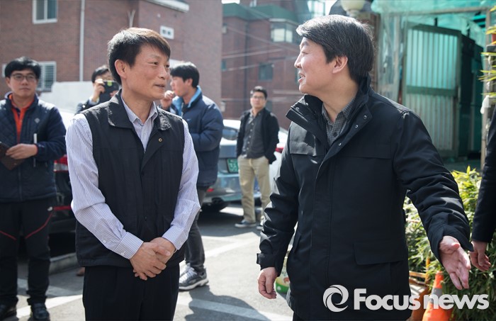 (서울=포커스뉴스) 안철수 국민의당 상임공동대표와 택시 기사가 간담회를 갖기 위해 15일 오후 서울 마포구 연남동의 한 기사식당 입구를 들어서고 있다.