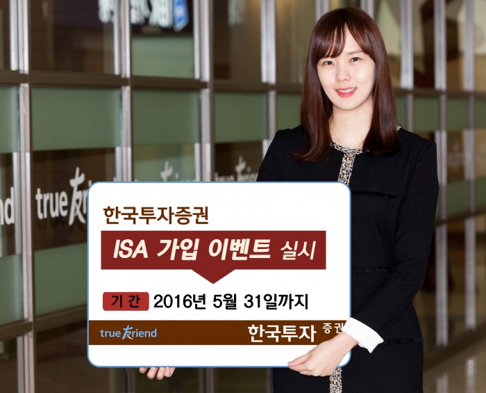 (서울=포커스뉴스) 한국투자증권이 오는 5월말까지 ISA 가입 고객을 대상으로 다양한 사은품을 제공하는 이벤트를 진행한다고 15일 밝혔다.