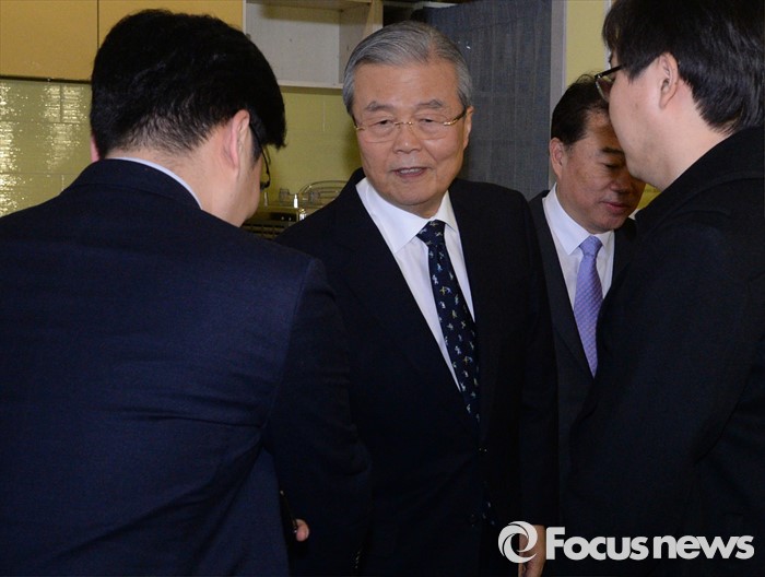 (서울=포커스뉴스) 김종인 더불어민주당 비대위 대표가 15일 오후 서울 여의도 한 카페에서 열린 경제할배와 허심탄회 런치토크 - 샐러리맨편 행사에 참석해 직장인들과 인사하고 있다.