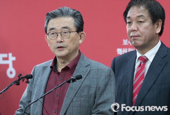 (서울=포커스뉴스) 이한구(왼쪽) 새누리당 공천관리위원장과 박종희 제2사무부총장이 15일 오후 서울 여의도 당사에서 20대 총선 3차 경선결과를 발표를 하고 있다. 이날 새누리당 공천관리위원회는 서울 종로구 선거구에 오세훈 전 서울시장이 경선 후보로 확정됐다고 전했다.