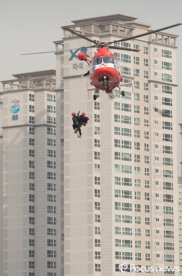(서울=포커스뉴스) 15일 오후 서울 서초구 고속터미널 광장에서 훈련 참가자들이 시민안전확보를 위한 유관기관 합동 대테러 종합훈련을 하고 있다.