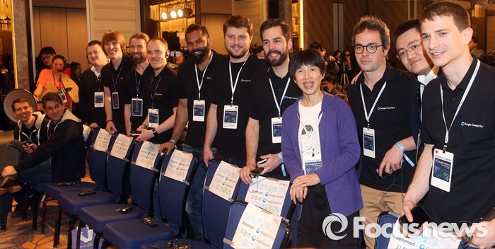 (서울=포커스뉴스) 15일 오후 서울 광화문 포시즌스 호텔에서 열린 구글 딥마인드 챌린지 매치 시상식에서구글 딥마인드의 알파고 팀이 기념촬영을 하고 있다.오른쪽 네번째 여성은 중국 여기사 루이9단.