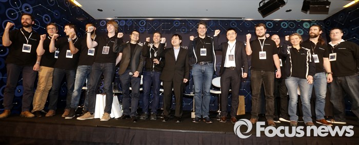 (서울=포커스뉴스) 15일 오후 서울 광화문 포시즌스 호텔에서 열린 구글 딥마인드 챌린지 매치 시상식에서구글 딥마인드의 알파고 팀이 기념촬영을 하고 있다.