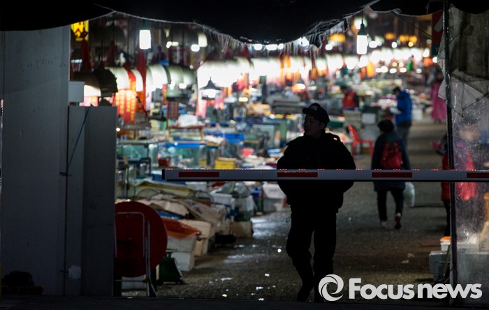 (서울=포커스뉴스) 16일 오전 첫 경매가 열린 서울 노량진 수산시장 현대화 건물 너머 옛 수산시장의 모습이 보이고 있다. 이날 경매를 시작으로 현대화 건물에서의 개장이 이뤄졌지만, 절반 넘는 상인들이 좁아진 상가 공간과 비싸진 임대료를 주장하며 옛 건물에 남은 채 이전을 거부 중인 상황이다.