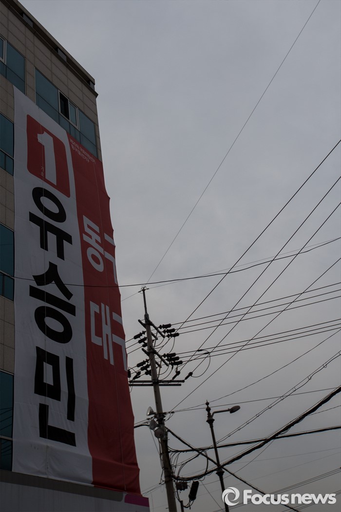 (대구=포커스뉴스) 새누리당이 유승민(대구 동구을) 의원에 대한 공천 배제안을 놓고 고민하고 있는 16일 오전 대구 동구 한 건물에 유 의원의 선거사무소가 마련되어 있다.