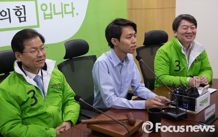 | △ 국민대표와 함께 회의하는 안 대표와 천 대표 |