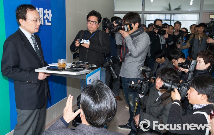 (세종=포커스뉴스) 이해찬 더불어민주당 의원이 16일 오전 세종시 도담동 선거사무소에서 기자회견을 열고 더불어민주당 탈당과 무소속 출마의사를 밝히고 있다.