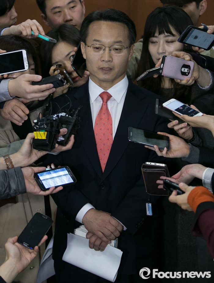 (서울=포커스뉴스) 공천 배제(컷오프)된 조해진 새누리당 의원이 16일 오전 서울 여의도 국회 정론관에서 공천관리위원회의 결정에 반발하는 내용의 기자회견을 마친 뒤 취재진 질문에 답하고 있다.