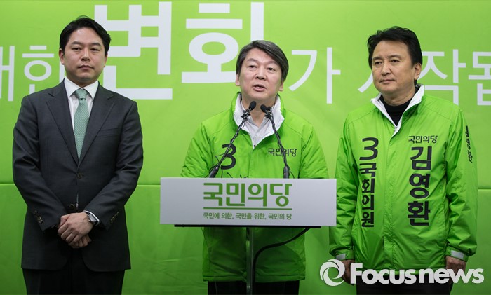 (서울=포커스뉴스) 안철수 국민의당 상임공동대표(가운데)가 16일 오전 서울 마포구 국민의당 당사에서 더불어민주당을 탈당한 정호준 의원(왼쪽)의 입당 소식을 알리고 있다.